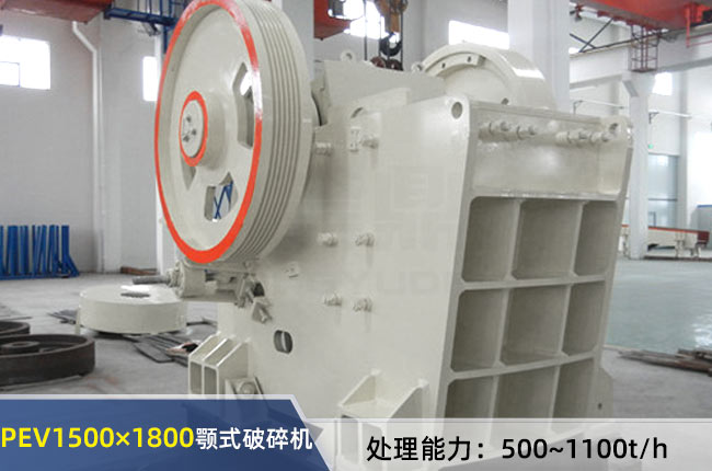 PEV1500×1800顎式破碎機(jī)進(jìn)料粒度<1250mm,出料大小在210-360mm之間,時(shí)處理能力500-1100噸,電機(jī)功率是280千瓦,外形尺寸7460x6240x4250mm,重122噸。
