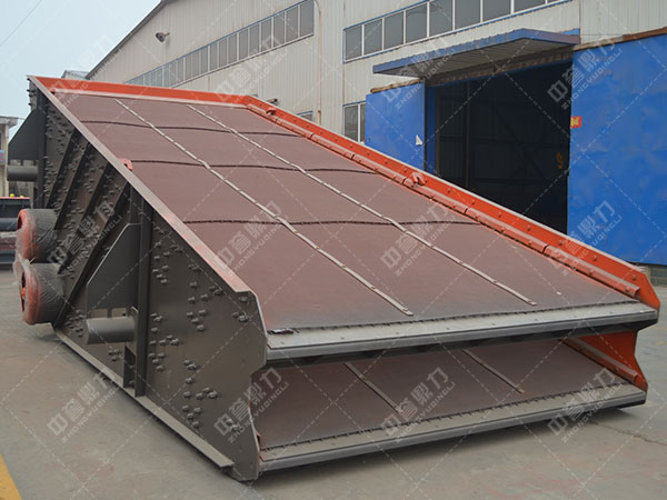 ZSG系列礦山振動(dòng)篩 工作時(shí),兩電機(jī)同步反向放置使振動(dòng)電機(jī)出現(xiàn)反向激振力,迫使篩體驅(qū)使篩網(wǎng)做縱向運(yùn)動(dòng),使礦山振動(dòng)篩 上的巖石受激振力而時(shí)間性向前拋出一個(gè)射程,從而完畢巖石篩選分級(jí)工作。
